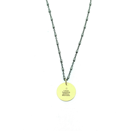 Colgante Namaste oro amarillo 18 kt con cadena pla