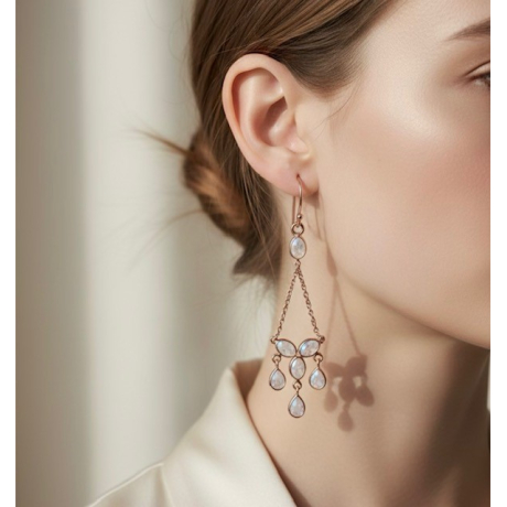 Pendientes plata rosada y piedra de luna