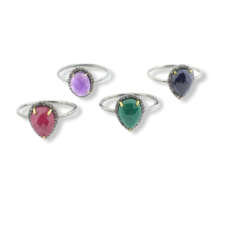 Anillo plata con granate y brillantes