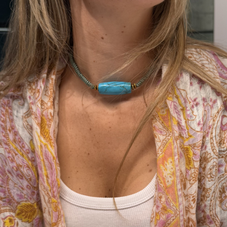 Collar turquesa reconstituida y macramé