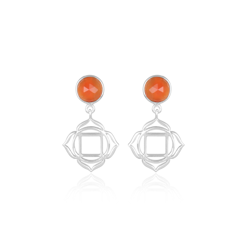 Pendientes chakra Muladhara plata de ley con cornalina