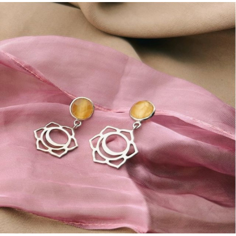 Pendientes chakra Svadhisthana plata de ley con calcedonia amarilla.