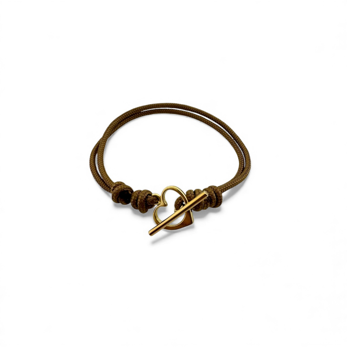 Pulsera corazón plata de ley dorada con macramé.